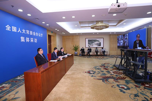 圖為集體采訪活動現(xiàn)場。(全國人大常委會辦公廳新聞局供圖)