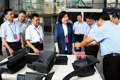 圖為視察組在臨朐縣大地汽車零部件有限公司年產(chǎn)30萬套長玻纖以塑代鋼塑料件項(xiàng)目現(xiàn)場實(shí)地察看。 王剛 攝