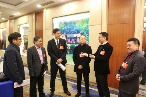 會上有“金點子”,會下有高“言”值。1月18日,湖南省政協(xié)全會科技界的小組討論會散場以后,省政協(xié)委員李完小、柳建新、王輝平、成艾國、戴躍鋒、李機旻(從左至右)圍成一圈,繼續(xù)就推進湖南先進制造業(yè)發(fā)展、加大企業(yè)科技研發(fā)投入、推進農(nóng)村普法教育等問題談感受、說建議。 劉洋 王雙 攝