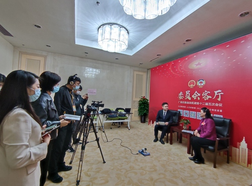 在廣西壯族自治區(qū)政協(xié)十二屆五次會議期間,人民政協(xié)報·人民政協(xié)網(wǎng)在會場外搭建“委員會客廳”,對委員進(jìn)行訪談。委員們紛紛通過網(wǎng)絡(luò)視頻方式發(fā)出政協(xié)好聲音。 肖亮升 攝