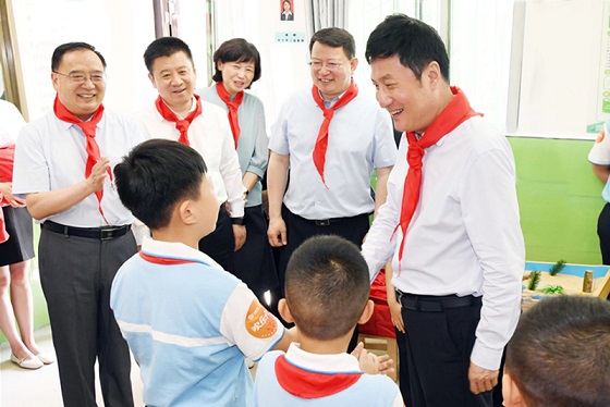 第五橋小學(xué)為城中村小學(xué),90%的學(xué)生為外來務(wù)工人員子女,其中困難兒童25人。郭大為聽取了學(xué)校基本情況介紹,觀看了學(xué)生美術(shù)教學(xué)活動,向孩子們致以節(jié)日問候,鼓勵他們鍛煉好身體、學(xué)習(xí)好知識,做一個對社會有用、讓他人喜歡的人。他指出,關(guān)愛兒童就是點(diǎn)亮希望,要給每一名兒童創(chuàng)造美好的學(xué)習(xí)生活環(huán)境,讓向上向善向美的種子早早扎根心靈深處。要嚴(yán)格依法保護(hù),履行法定職責(zé),加快構(gòu)建未成年人保護(hù)工作網(wǎng)絡(luò)體系,合力做實做細(xì)各項工作,依法維護(hù)好未成年人的合法權(quán)益,用行動畫好未成年人保護(hù)的“同心圓”。