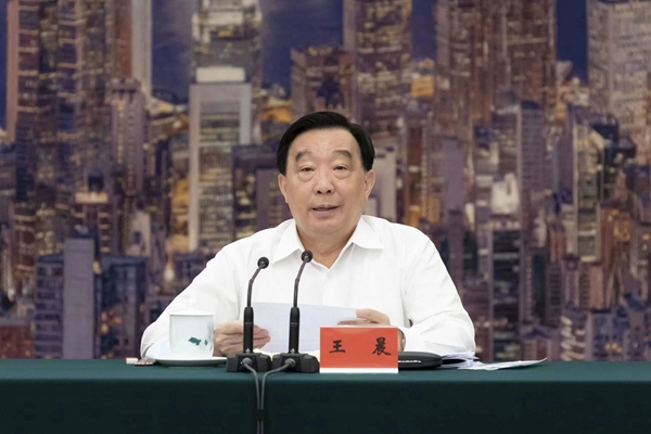 6月14日,中共中央政治局委員、全國(guó)人大常委會(huì)副委員長(zhǎng)、中國(guó)法學(xué)會(huì)會(huì)長(zhǎng)王晨在京出席深入學(xué)習(xí)研究闡釋習(xí)近平法治思想研討會(huì)并講話。攝影/蔣啟明