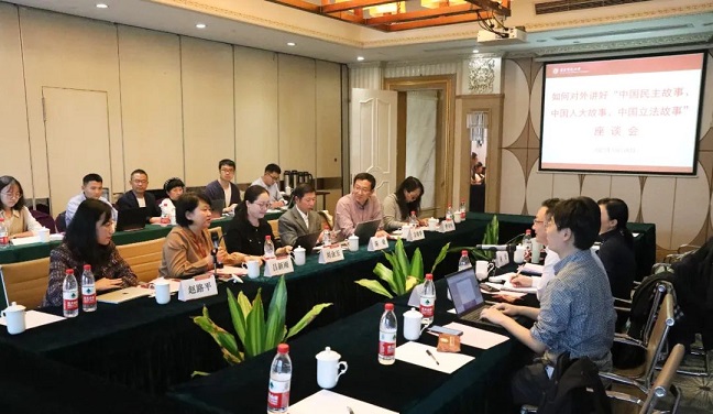 虹橋聯(lián)系點聯(lián)合華東師范大學(xué)傳播學(xué)院、馬克思主義學(xué)院等部門,就“如何對外講好中國民主故事、中國人大故事、中國立法故事”召開座談會。(虹橋聯(lián)系點供圖)