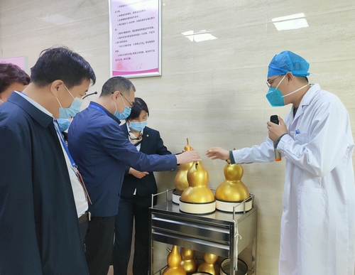 圖為中醫(yī)醫(yī)療機構(gòu)向委員們介紹特色理療“葫蘆針灸療法”。