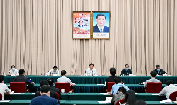 7月12日至15日,中共中央政治局常委、全國(guó)人大常委會(huì)委員長(zhǎng)栗戰(zhàn)書率隊(duì)赴西藏就青藏高原生態(tài)保護(hù)立法進(jìn)行調(diào)研。這是7月14日下午,栗戰(zhàn)書在拉薩主持召開立法座談會(huì)并講話。攝影/新華社記者?翟健嵐