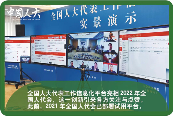據(jù)了解,2021年3月,十三屆全國(guó)人大四次會(huì)議部署試用了全國(guó)人大代表工作信息化平臺(tái),通過平臺(tái)開展了全部代表議案和部分代表建議的提交、分析、交辦等工作,會(huì)后繼續(xù)開展平臺(tái)二期功能開發(fā)。