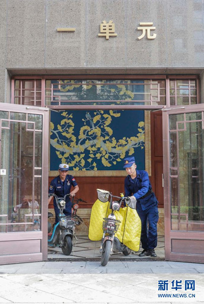 8月1日,消防救援人員在河北省遵化市一住宅小區(qū)樓道清理搬運(yùn)違規(guī)停放的電動車。