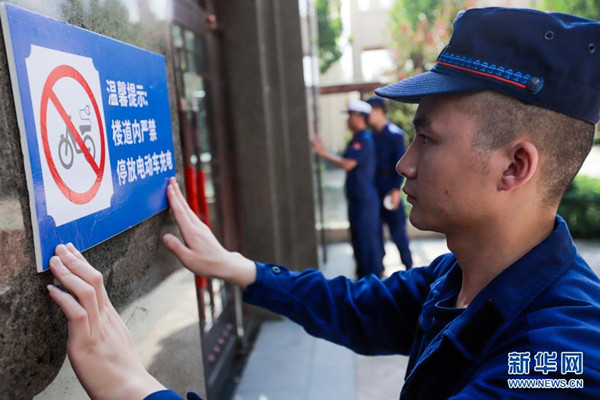 8月1日起,《高層民用建筑消防安全管理規(guī)定》開始施行,對電動車“進(jìn)樓”問題作出規(guī)定。規(guī)定明確,禁止在高層民用建筑公共門廳、疏散走道、樓梯間、安全出口停放電動自行車或者為電動自行車充電。鼓勵在高層住宅小區(qū)內(nèi)設(shè)置電動自行車集中存放和充電的場所。