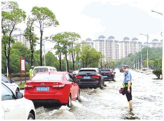 近日,江西省新余市遭受強降雨襲擊,城區(qū)部分道路積水嚴重,不少車輛及群眾被困。新余市公安局交警支隊民警迅速奔赴搶險救援第一線,全力開展排險解困工作。圖為民警涉水疏導指揮交通。