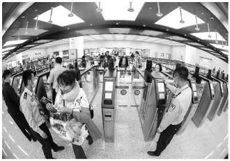 山東青島機(jī)場(chǎng)邊檢站民警為入境旅客快捷通關(guān)提供操作指引