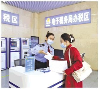 為確保制造業(yè)中小微企業(yè)緩繳稅費政策落實落細,國家稅務(wù)總局蘇尼特左旗稅務(wù)局開通綠色通道,簡化辦理流程,穩(wěn)妥做好緩稅退稅工作。圖為稅務(wù)工作人員向納稅人講解相關(guān)政策。