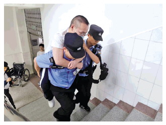 襄陽市公安局高新區(qū)分局將工作中發(fā)現(xiàn)的、身患?xì)埣残袆?dòng)不便考生送到考場,多名民警接力將其背到考試教室。
