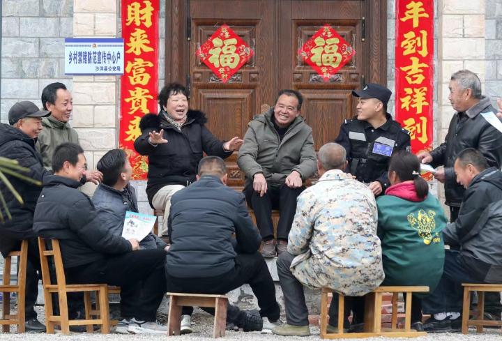 在公安部部署開展的“清風(fēng)2024”專項行動中,湖北省沙洋縣公安局建立“鄉(xiāng)村禁賭防范宣傳中心戶”,以房前屋后為陣地,協(xié)助公安機(jī)關(guān)開展禁賭、禁毒、反詐等治安防范宣傳。圖為2月28日,沙洋縣馬良鎮(zhèn)耀星村“鄉(xiāng)村禁賭防范宣傳中心戶”向鄰居宣傳賭博危害。