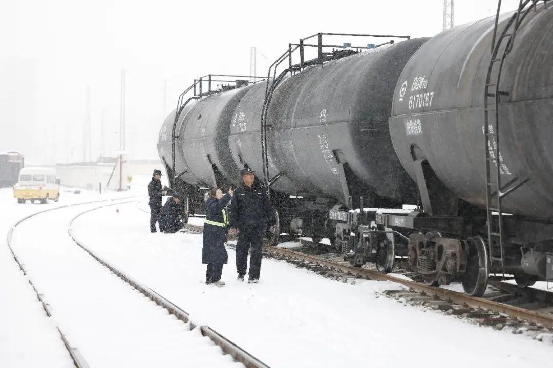 近日,烏魯木齊鐵路公安局庫(kù)爾勒公安處治安支隊(duì)會(huì)同庫(kù)爾勒站派出所深入轄區(qū)鐵路物流中心,對(duì)停靠車(chē)體、危險(xiǎn)易燃貨品開(kāi)展防災(zāi)減災(zāi)專(zhuān)項(xiàng)排查,確保安全生產(chǎn)。圖為民警正在進(jìn)行專(zhuān)項(xiàng)排查。