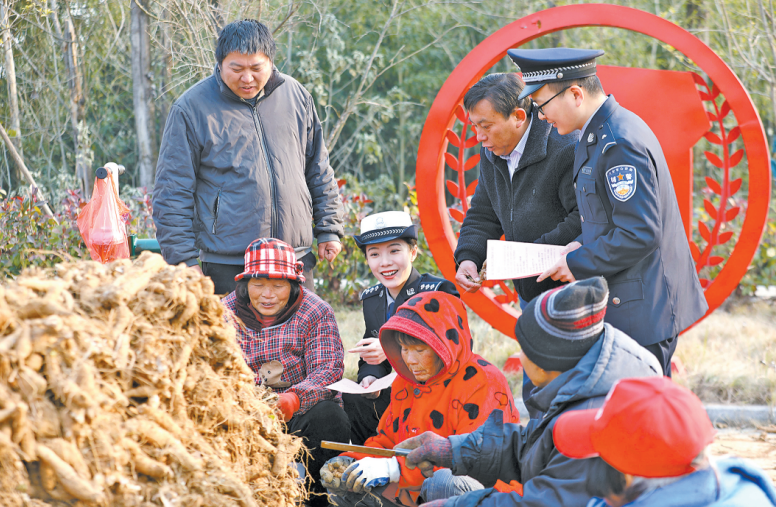 入冬以來,為提升群眾安全防范意識,安徽省舒城縣公安局交管大隊聯(lián)合張母橋派出所開展“冬日走訪 守護安全”主題宣教活動,組織民輔警走村入戶,傾聽群眾對公安機關(guān)工作的意見和建議,積極宣講公安機關(guān)服務政策。圖為民輔警向群眾講解冬季安全防范知識。