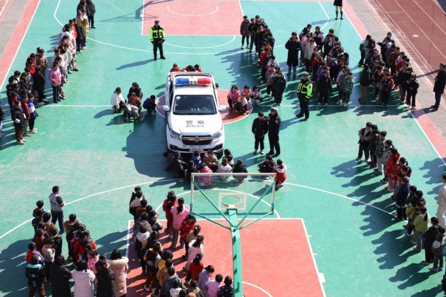為進(jìn)一步筑牢寒假期間交通安全防線,江西省遂川縣公安局交警大隊(duì)近日組織民警走進(jìn)轄區(qū)中小學(xué)校,開(kāi)展交通安全宣傳活動(dòng)。圖為1月10日,民警在遂川縣大汾鎮(zhèn)寨溪小學(xué)向?qū)W生講解機(jī)動(dòng)車(chē)駕駛盲區(qū)知識(shí)。