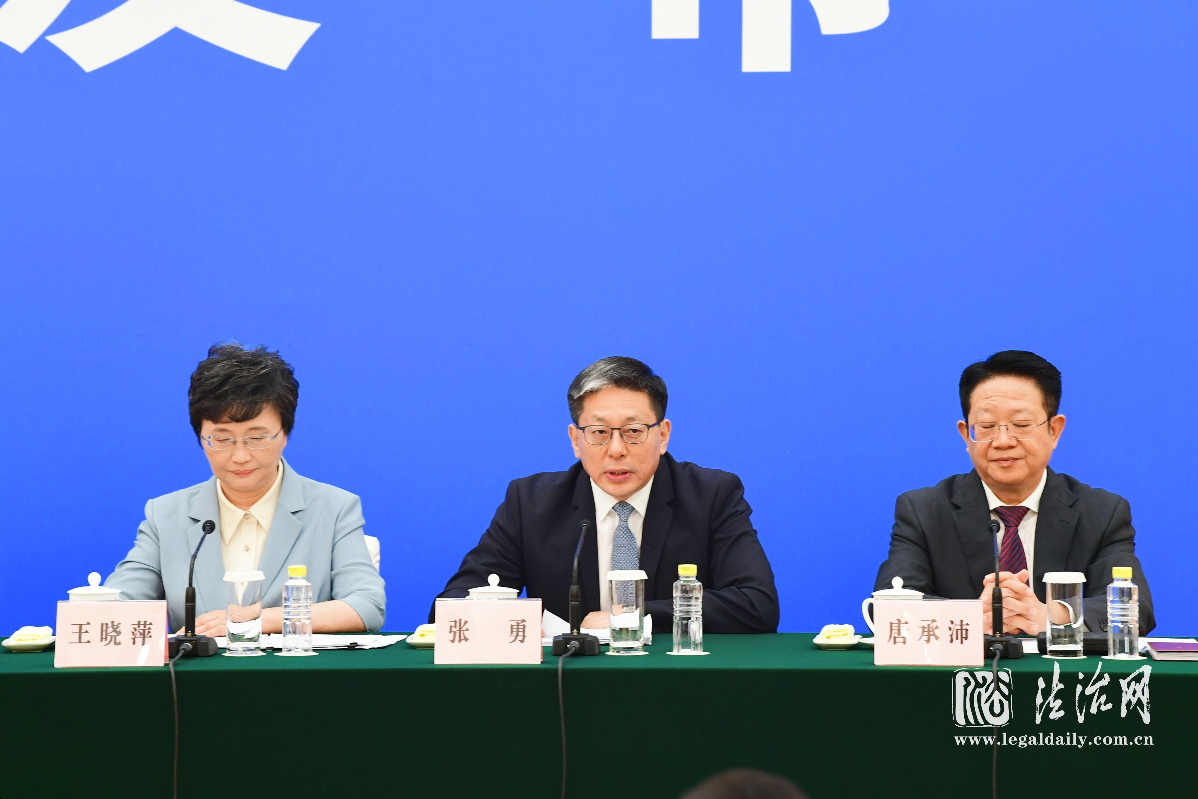 9月13日下午,全國人大常委會辦公廳舉行新聞發(fā)布會。圖為全國人大常委會法工委副主任張勇回答記者提問。張峻銘 攝