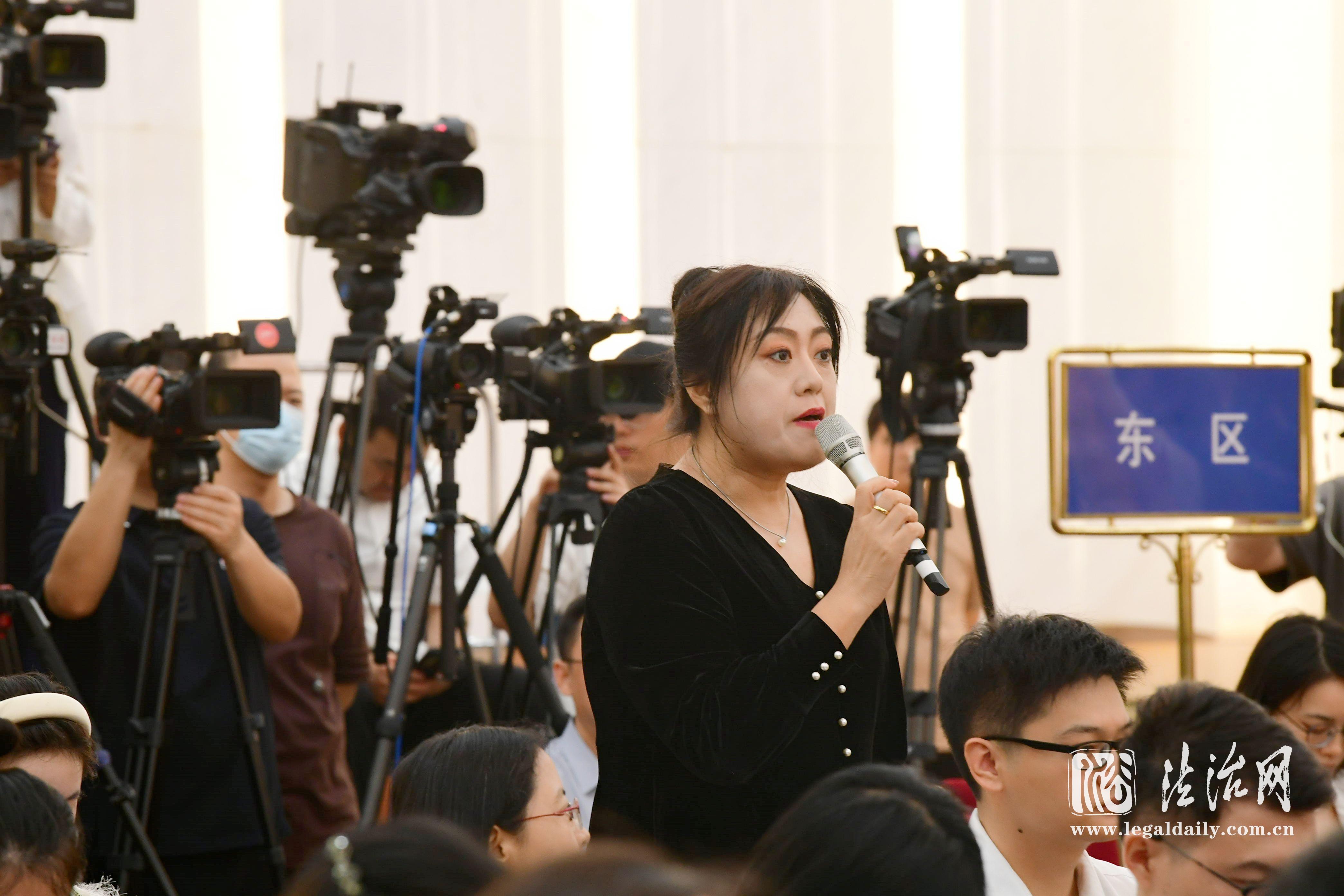 9月13日下午,全國人大常委會(huì)辦公廳舉行新聞發(fā)布會(huì)。圖為法治日報(bào)記者提問。張峻銘 攝