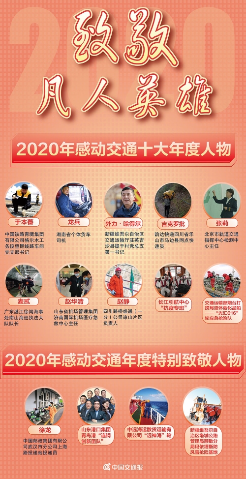 偉大寓于平凡之中。決勝小康,決戰(zhàn)疫情,在2020這極不平凡的一年里,交通運輸行業(yè)涌現出一批來自基層一線的凡人英雄。