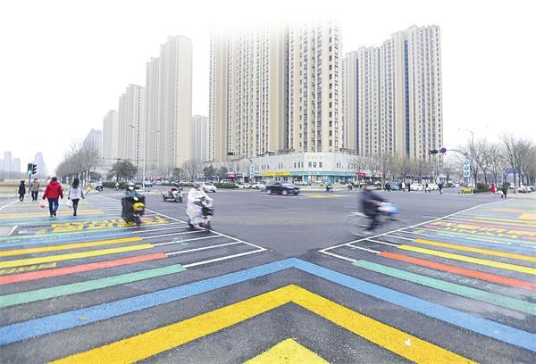 近日,濟南首條“彩虹琴鍵斑馬線”正式完工,亮相槐蔭區(qū)臘山河?xùn)|路與興福寺路交叉口。路口中間是“繽紛五色,匯流成章”的主題圖案,充分體現(xiàn)了泉城濟南“山、泉、湖、河、城”的元素。在斑馬線中間,有“我愛濟南”“有你在,我安心”“幸福路,慢慢走”等溫馨的話語,還增加了“安全帶,幸福帶”“把安全‘戴’(頭盔)回家”等交通安全的宣傳標(biāo)語。交警部門希望通過示范路口的“吸睛效應(yīng)”,將這里打造成一個高效率的交通安全宣傳陣地,進一步增強廣大交通參與者的守法安全意識。(本報記者 崔健 攝)