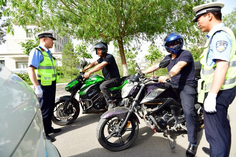連日來,甘肅省臨澤縣公安局交警大隊開展打擊整治“飆車炸街”違法犯罪專項行動,切實維護(hù)道路交通秩序和公共安全。圖為6月6日,交警正在嚴(yán)查道路“飆車炸街”違法行為。通訊員 安學(xué)海 攝
