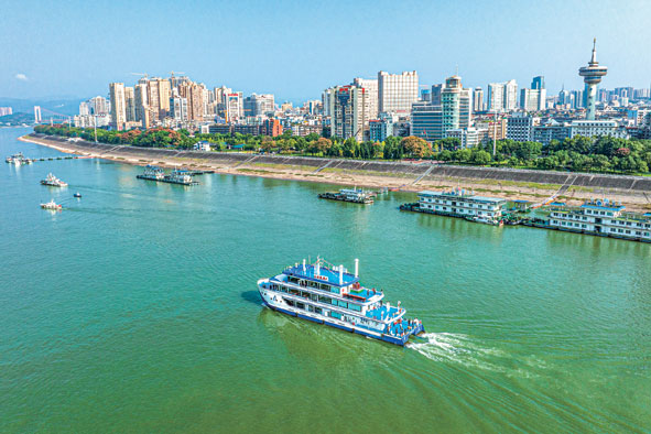 10月11日,“三峽氫舟1”號(hào)行駛在長江湖北宜昌水域。肖藝九/攝