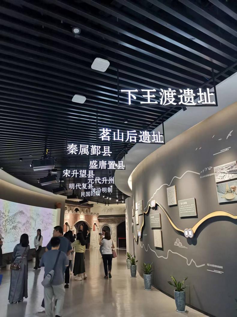 科普中心館內(nèi)布展面積約5000㎡,以“最美最好”為主線串聯(lián)序廳、自然歷史文化廳、規(guī)劃模型廳、全域旅游廳、共享城市廳、碗幕影院廳和尾廳共7個展廳,借助異彩紛呈的現(xiàn)代科技手段,全面展示奉化悠久歷史、當(dāng)前“追趕跨越”的發(fā)展布局和未來“后來居上”的可期愿景。透過“歲月之美、詩畫之美、美好藍(lán)圖、美好家園”四大內(nèi)容板塊的展示,記者充分感受到奉化的城市歷史之悠久、生態(tài)人文之美麗、新城建設(shè)之美好。據(jù)奉化區(qū)人大代表、中交城投寧波區(qū)域分公司總經(jīng)理劉濤介紹,作為集規(guī)劃展示、學(xué)術(shù)研究、文化交流、教育實踐、商務(wù)休閑等多功能為一體的城市公共空間,科普中心已成為外界了解奉化的重要窗口,被譽為奉化“城市之眼”。