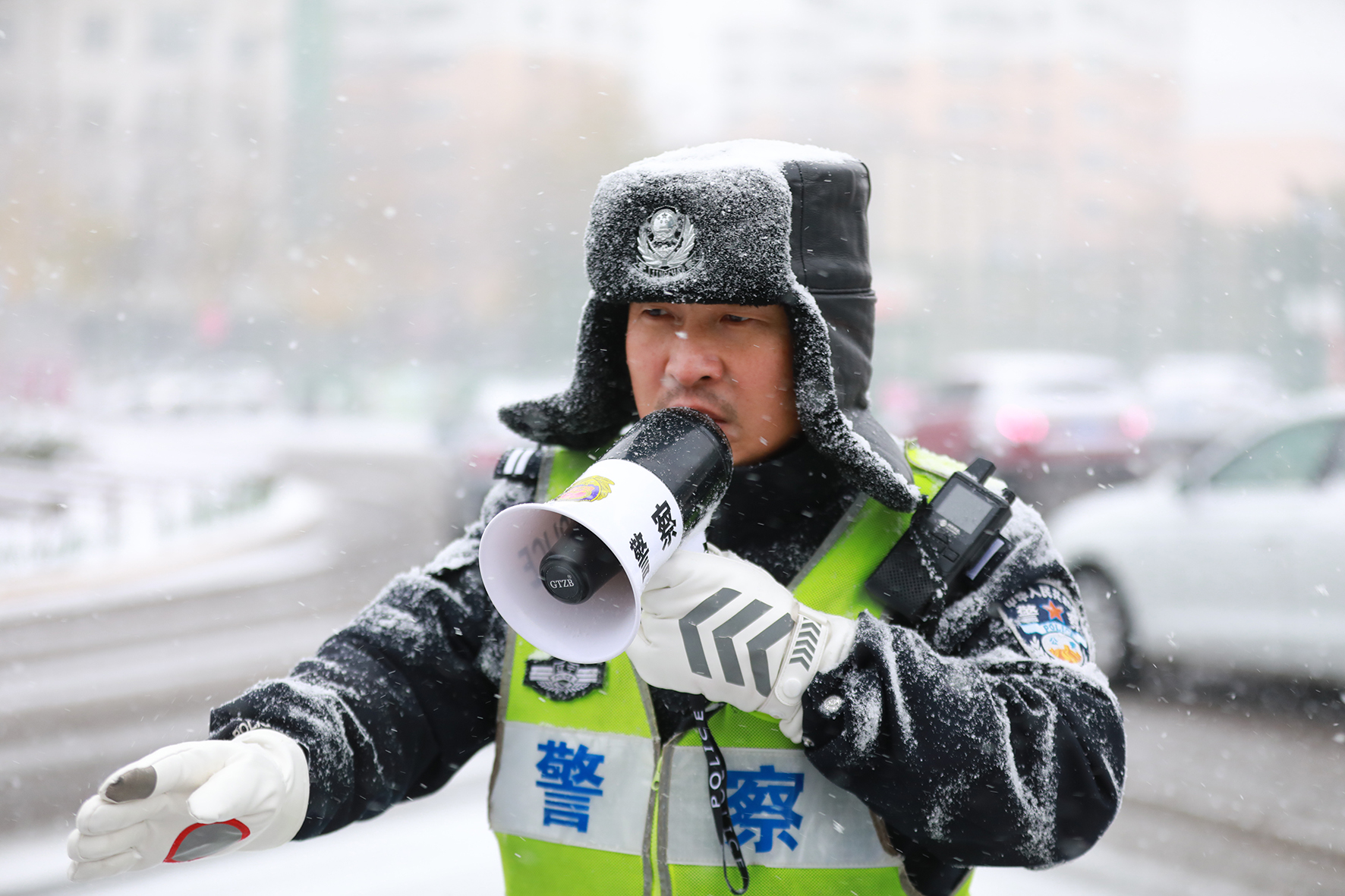11月6日,遼寧省沈陽市公安局交通警察局以雪為令,對(duì)車流行人和坡面路段重點(diǎn)布置警力,確保市民出行安全暢通。