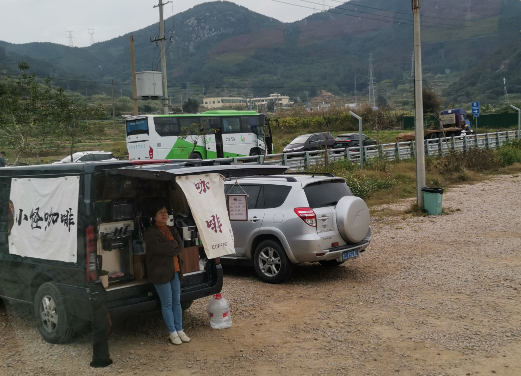 村民在游客停車場的移動咖啡屋。趙暖芷 攝
