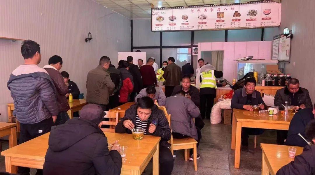 12月24日凌晨1點(diǎn)30分,在高速公路買(mǎi)家巷服務(wù)區(qū)愛(ài)心餐廳,從蘭州往積石山拉運(yùn)活動(dòng)板房的貨車(chē)司機(jī)馬師傅和其他司機(jī)們一同吃上了熱騰騰的免費(fèi)牛肉面。
