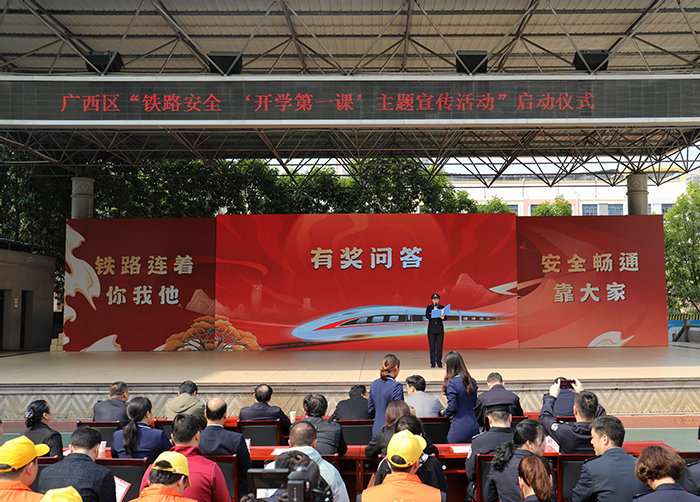 活動現(xiàn)場,錦華小學(xué)學(xué)生“紅領(lǐng)巾護(hù)路隊”代表宣讀愛路護(hù)路倡議書;學(xué)生表演《愛路護(hù)路我能行》節(jié)目,以快板和舞蹈的形式宣傳鐵路安全知識;鐵路青年志愿者通過護(hù)路快板表演,將鐵路安全小知識改編成朗朗上口的順口溜,讓人印象深刻;南寧站派出所民警上臺講解鐵路安全注意事項,進(jìn)一步提升未成年人法律意識和安全意識。