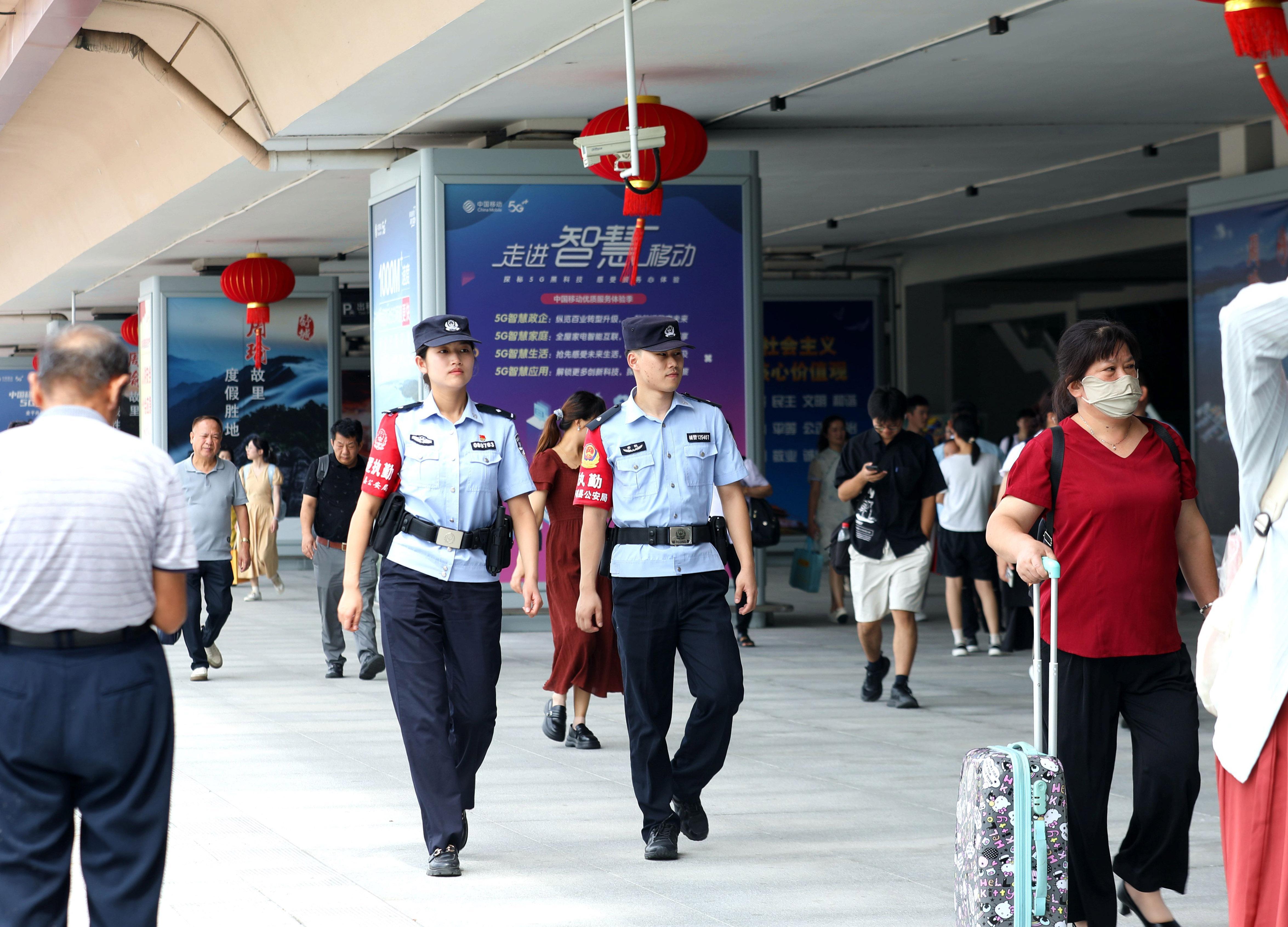 中秋假期,安徽省舒城縣公安局高鐵東站警務(wù)站組織全體民警輔警加大巡邏檢查力度和服務(wù),確保旅客出行安全。