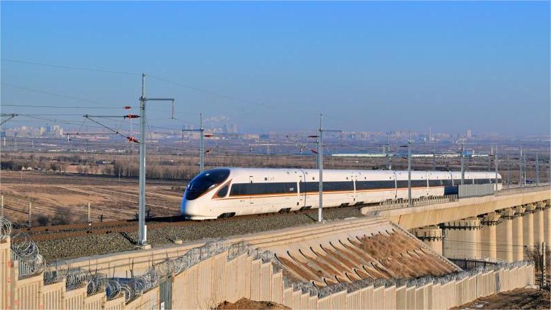 12月31日,G4798/5次復(fù)興號(hào)動(dòng)車組列車行駛在集大原高鐵烏蘭察布至豐鎮(zhèn)北區(qū)間。