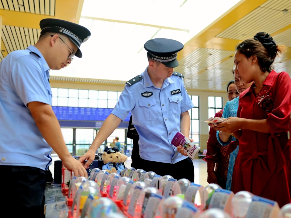 在第38個國際禁毒日來臨之際,烏魯木齊鐵路公安局喀什公安處在喀什火車站候車廳開展以“健康人生 綠色無毒”為主題的禁毒宣傳活動。民警通過懸掛橫幅、擺放展板、發(fā)放宣傳資料等方式,向旅客介紹新型毒品的基本特征、種類以及危害性,并結(jié)合典型案例講解防范毒品技巧,引導(dǎo)群眾牢固樹立“珍惜生命、遠(yuǎn)離毒品”的意識,自覺抵制毒品誘惑,并鼓勵廣大群眾積極向公安機(jī)關(guān)及有關(guān)單位舉報毒品違法犯罪行為。