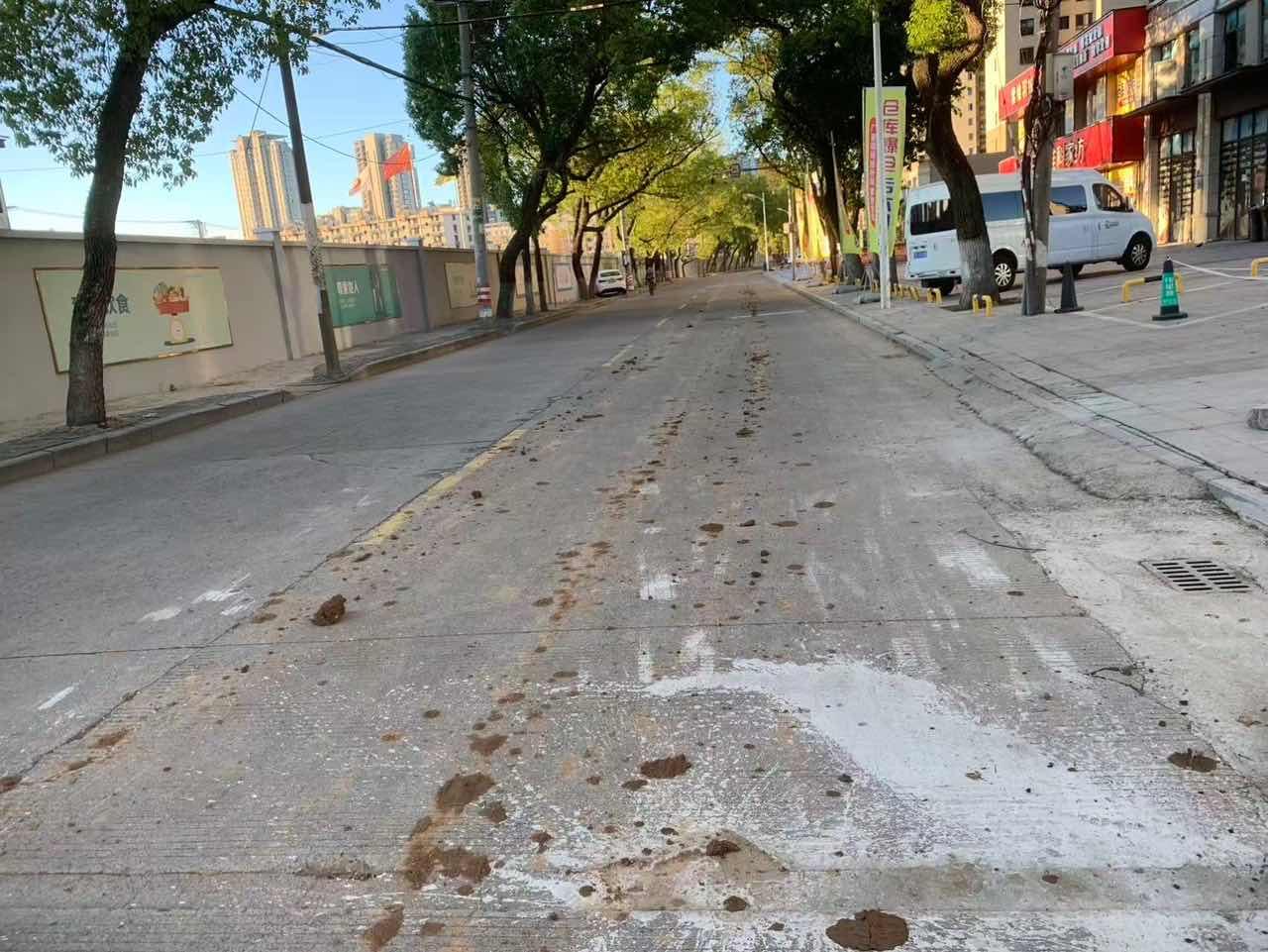 事發(fā)當(dāng)日,錦屏中隊執(zhí)法人員在日常巡查時,發(fā)現(xiàn)廣平路的路面上有一攤?cè)雎湓诘厣系狞S泥,受雨水的影響結(jié)成了硬塊,污染面積約50平方米,影響市容與通行。執(zhí)法人員隨即調(diào)取該路段的視頻監(jiān)控,經(jīng)過現(xiàn)場勘驗比對,迅速鎖定涉事車輛及當(dāng)事人。隨后,執(zhí)法人員約談當(dāng)事人制作調(diào)查詢問筆錄,當(dāng)事人對自己的違法行為供認不諱,并在督促下第一時間完成了路面清洗,恢復(fù)了道路原貌。