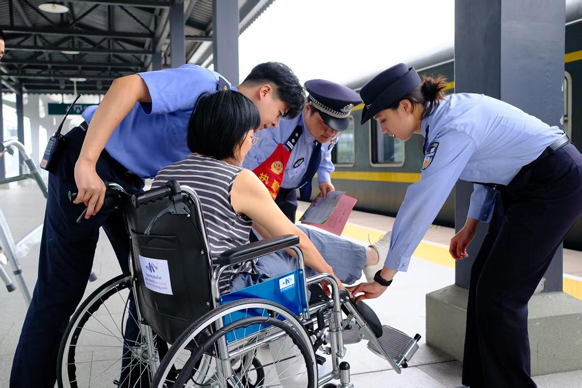 10月8日,上海鐵路公安局杭州鐵路公安處嘉興車站派出所與杭州乘警支隊組織民警在車站及站臺向旅客普及購票反詐、行李防盜等安全常識,并為重點旅客提供暖心服務(wù),守護旅客返程平安。