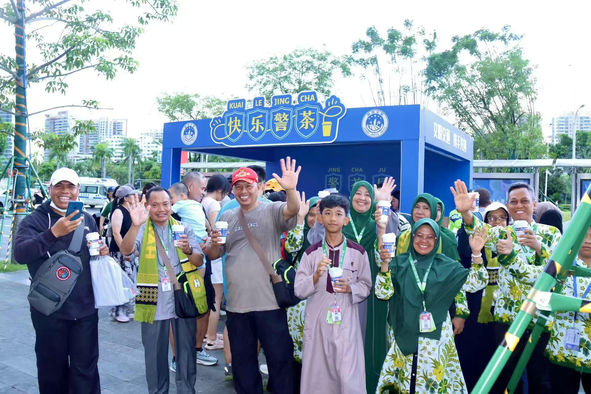 “警茶局”的魅力,還吸引了八方來客。10月2日下午,來自印度尼西亞的馬克在導(dǎo)游的幫助下,成功答對了所有題目。他興奮地舉起手中的“警茶”,為這個創(chuàng)意活動點贊。