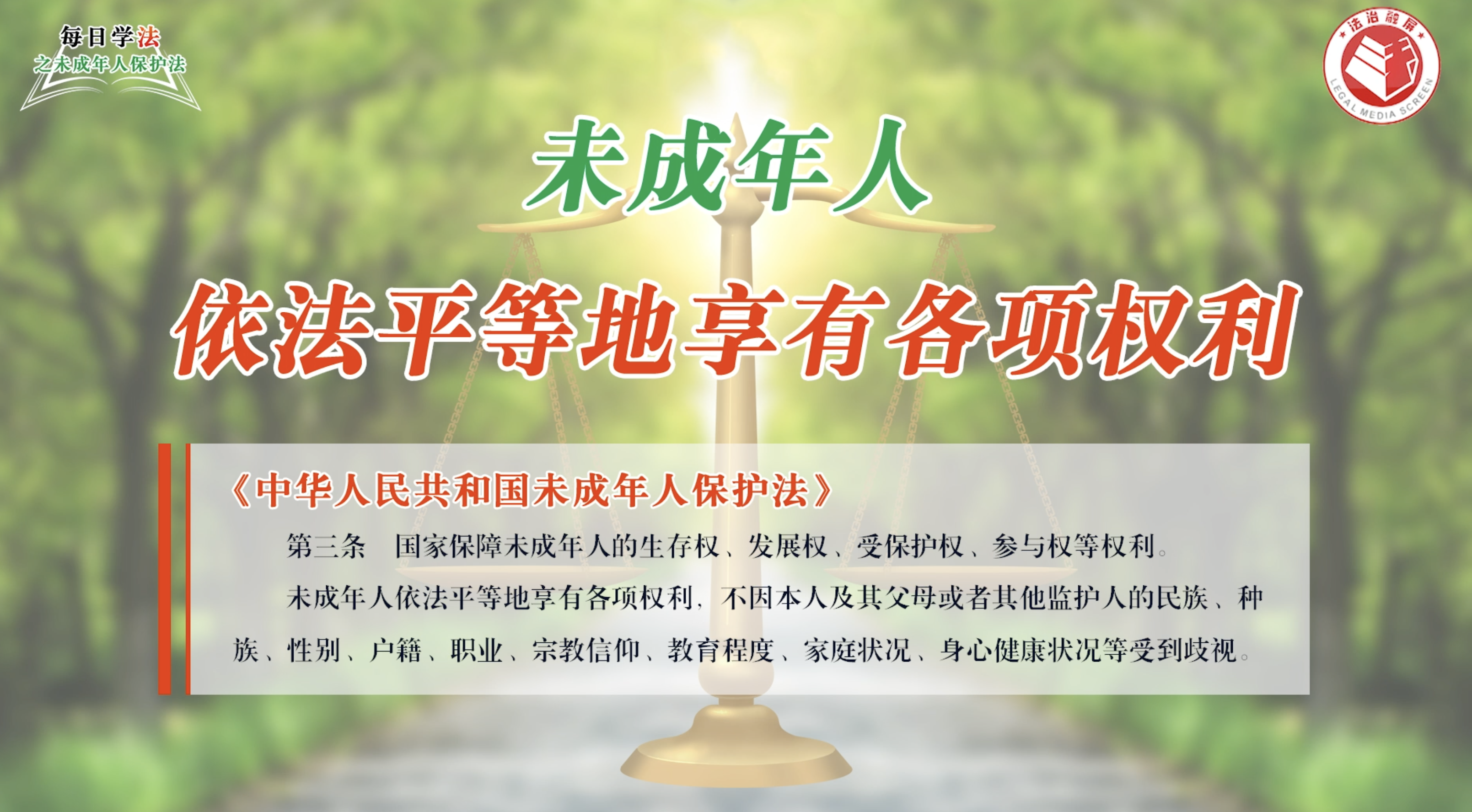 《每日學(xué)法》未成年人依法平等地享有各項(xiàng)權(quán)利