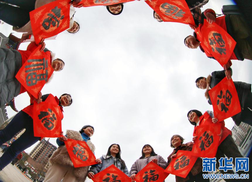 1月8日,在江西省贛州市全南縣河邊街公園,市民展示收到的“?!弊?。(新華網(wǎng)發(fā) 尹其奇 攝)