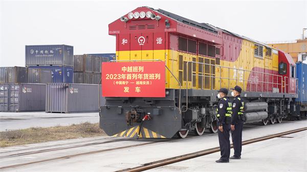 1月19日,一列滿載黑木耳、風(fēng)味蘑菇、糖果、啤酒等特色食品以及日用品等貨物的中越班列從南寧國際鐵路港駛出,預(yù)計24小時后到達(dá)越南安員站。這是今年以來的第7列中越班列,為東盟國家同慶春節(jié)送去滿滿年貨。
