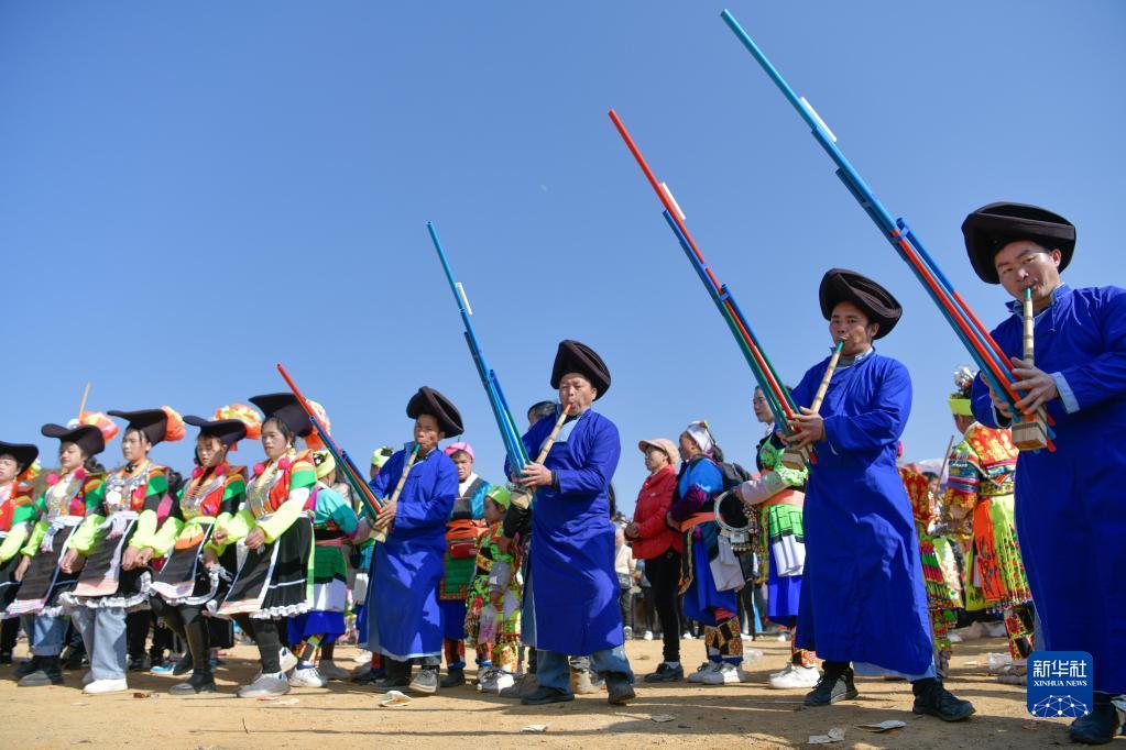 1月29日,苗族群眾在中排村參加“跳月”活動(dòng)。新華社發(fā)(張暉攝)