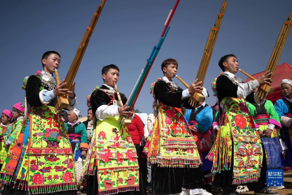 1月29日,苗族群眾在中排村參加“跳月”活動(dòng)。