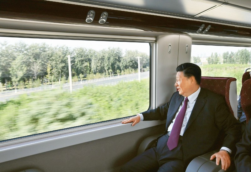 2019年9月25日上午,北京大興國際機(jī)場投運(yùn)儀式在北京舉行。中共中央總書記、國家主席、中央軍委主席習(xí)近平出席儀式,宣布機(jī)場正式投運(yùn)并巡覽航站樓。這是習(xí)近平乘坐軌道列車前往北京大興國際機(jī)場。 新華社記者 謝環(huán)馳/攝