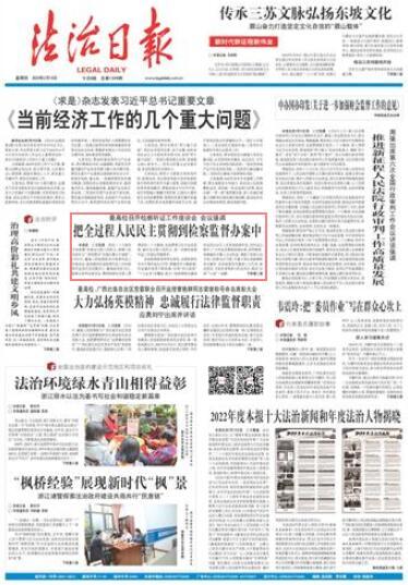 本報訊 記者張昊 黨的二十大報告專章部署“發(fā)展全過程人民民主,保障人民當家作主”,特別要求“完善辦事公開制度”。2月15日,最高人民檢察院召開檢察聽證工作座談會,就加強和改進檢察聽證工作向檢察聽證員代表問需求計。最高檢黨組書記、檢察長張軍出席會議,圍繞檢察機關(guān)深入貫徹黨的二十大精神,全面貫徹習近平法治思想,踐行全過程人民民主,進一步做好檢察聽證工作提出明確要求。