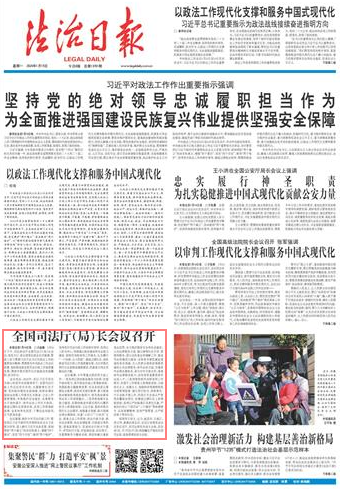 本報北京1月14日訊 記者趙婕 1月14日下午,司法部召開全國司法廳(局)長會議。黨組書記、部長賀榮出席會議并強(qiáng)調(diào),要深入學(xué)習(xí)貫徹習(xí)近平總書記對政法工作的重要指示精神,貫徹落實(shí)中央政法工作會議部署,加快推進(jìn)新征程司法行政工作高質(zhì)量發(fā)展,圍繞中國式現(xiàn)代化行穩(wěn)致遠(yuǎn)忠誠履職、擔(dān)當(dāng)作為。