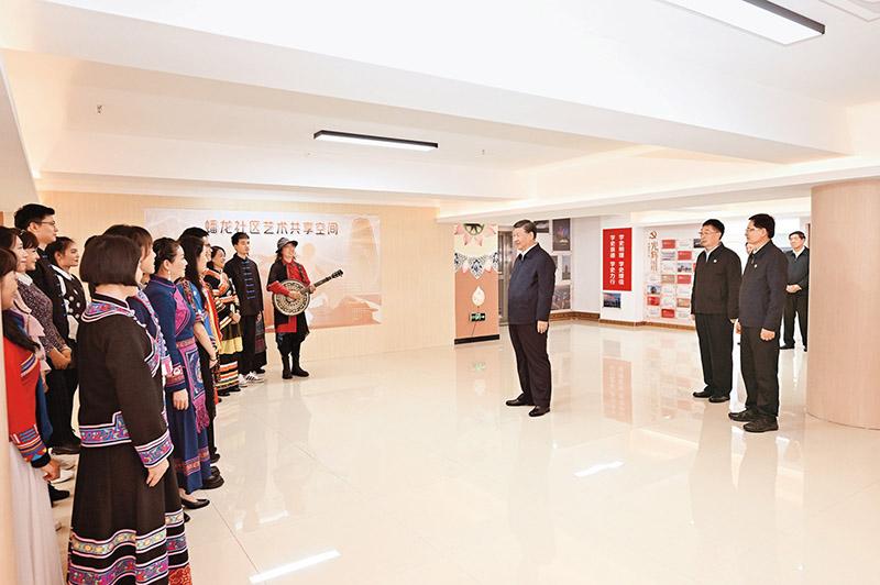 2023年12月14日至15日,中共中央總書記、國家主席、中央軍委主席習近平在廣西考察。這是14日上午,習近平在南寧市良慶區(qū)蟠龍社區(qū)黨群服務中心文體活動室同社區(qū)居民親切交流。新華社記者 謝環(huán)馳/攝