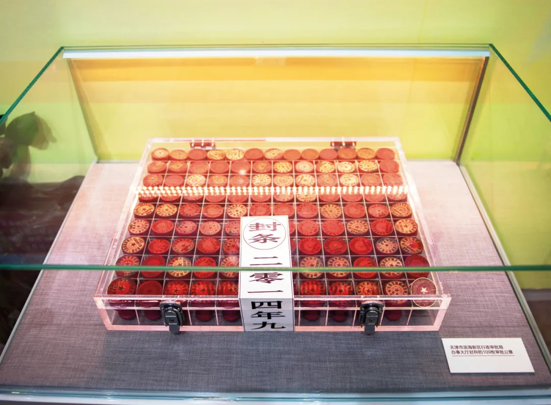 改革和法治如同鳥之兩翼、車之兩輪。必須堅(jiān)持全面依法治國(guó),在法治軌道上深化改革、推進(jìn)中國(guó)式現(xiàn)代化。圖為中國(guó)國(guó)家博物館收藏的來(lái)自天津市濱海新區(qū)的109枚審批公章(資料照片)。 新華社發(fā)