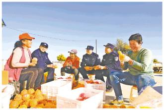 圖為陜西延安子長市公安局南溝岔派出所民警到農(nóng)家小院普及法律知識(shí)。 張翼龍 攝