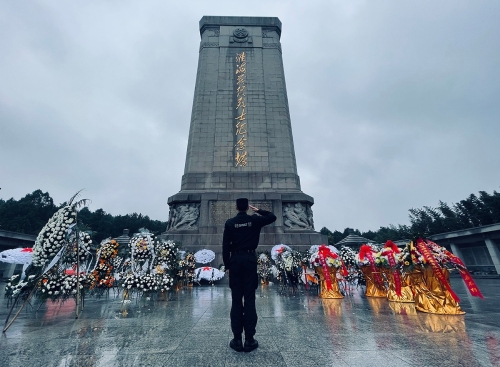 4月2日,徐州鐵路公安處特警在淮海戰(zhàn)役烈士紀念塔前向英烈肅立敬禮。清明期間,徐州鐵路公安處組織民警來到淮海戰(zhàn)役烈士紀念塔園,向英烈敬獻花籃寄托哀思,緬懷革命先烈,傳承紅色基因。