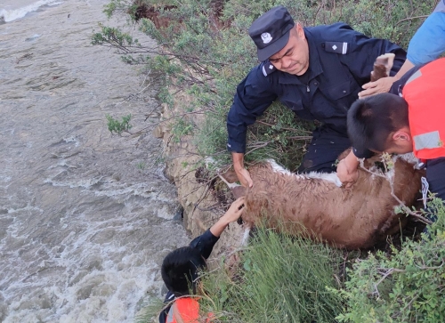 6月5日,新疆阿勒泰邊境管理支隊(duì)沖乎爾邊境派出所接到牧民報(bào)警稱自家小牛不慎掉下河崖,請(qǐng)求派出所協(xié)助救援。接到報(bào)警電話后,派出所立即組織4名民警趕赴現(xiàn)場(chǎng),身綁救援繩下河崖施救,經(jīng)過近1個(gè)小時(shí)的救援,在民警和現(xiàn)場(chǎng)群眾的協(xié)同配合下,成功將小牛營救上岸,為牧民群眾挽回經(jīng)濟(jì)損失。